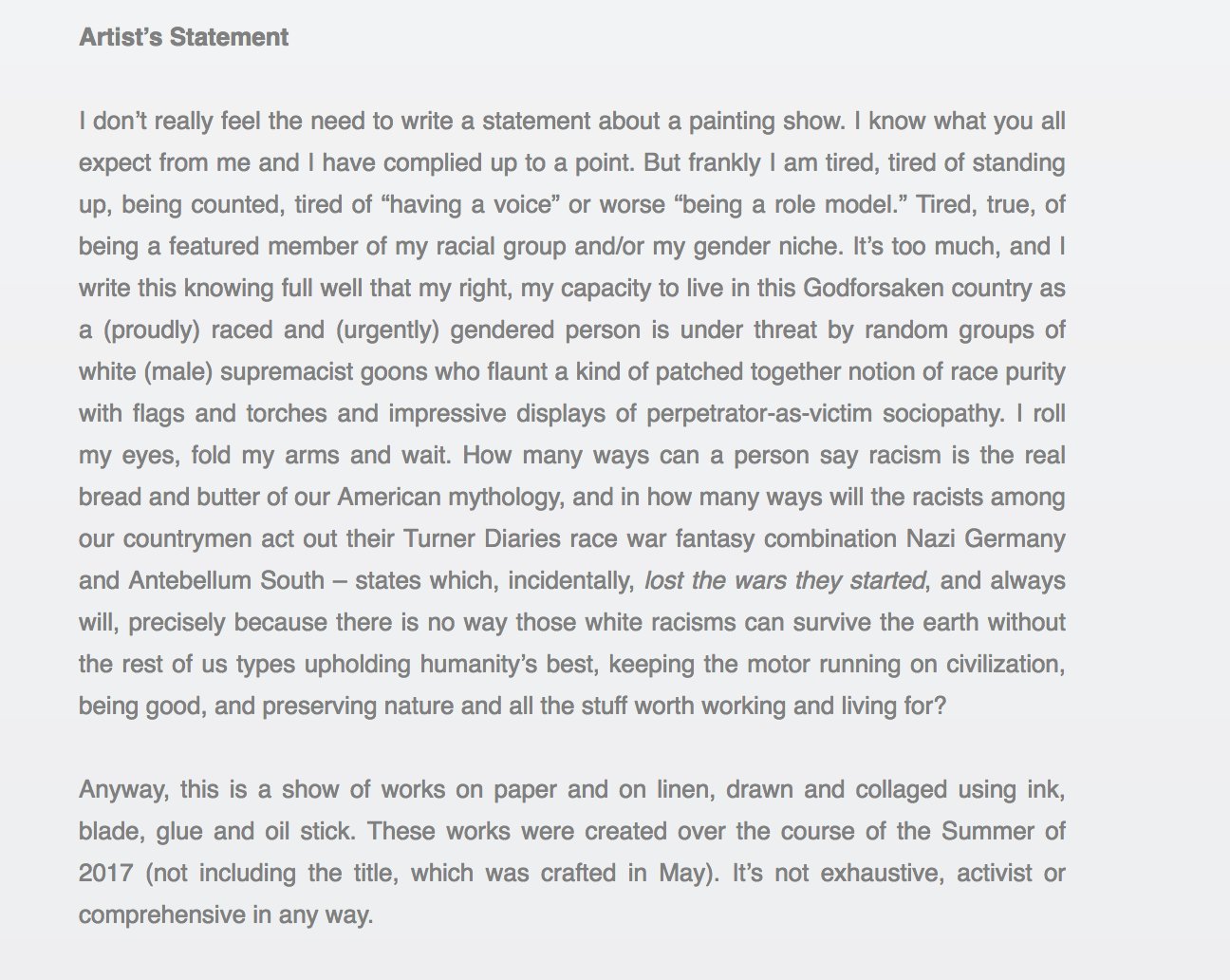 Rebecca Bengal On Twitter Kara Walker S Artist Statement Mic Drop Https T Co Ou6wrgbqm5 Twitter