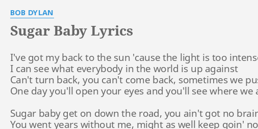 . Ive got my back to the sun cause the light is too intense I can see what everybody in the world is up against Cant turn back you cant come back sometimes we push too far. Sugar Baby song Sugar Baby is a song written and performed by the American singer-songwriter Bob Dylan released in 2001 as the 12th and final track on his album Love and. I got my back to the sun cause the light is too intense I can see what everybody in the world is up against You cant.